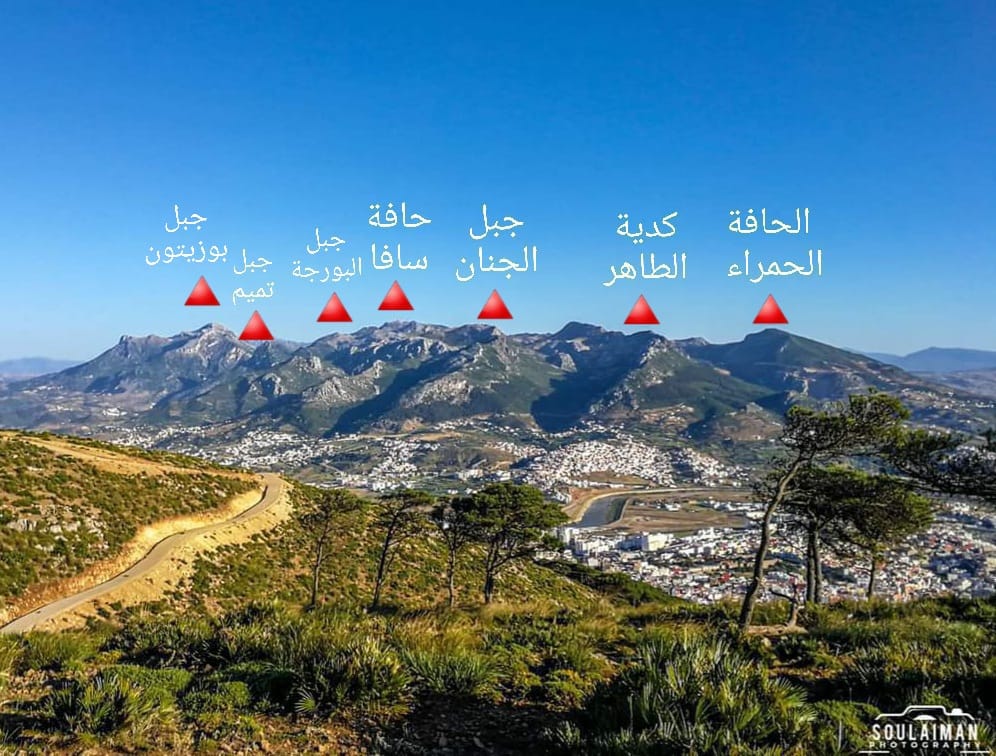 وهي مجموعة جبلية كلسية جنوب نهر مارتين و مقابل لمدينة تطوان ، يمتد على مساحة تقارب 60 كيلومتر مربع ، حيث تشكل حوالي 80 % من مساحة جماعة الزيتون و 20 % من مساحة جماعة بن قريش ، يتميز بقممه الحادة و أوديته العميقة ، كما يقسمه الجيولوجيون لمرتفعات كلسية داخلية و خارجية .